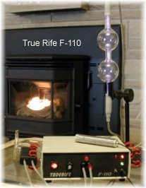 Another EMEM-type device is TrueRife’s F-110. This is EMEM taken to the next level. Like the Stenulson model, the output is limited to around 10 KHz when used with a plasma tube, but no rearrangement of patch jacks is necessary for it to operate through its entire frequency range. TrueRife machines use an Atelier Robin function generator board built into a PC case and the PC is used to control and run the device. The device is not portable, but does provide benefits such as being able to view comments in frequency sets which are otherwise unavailable when running an Atelier Robin function generator in standalone mode. The F-110 has the ability to run in pad mode (without the tube), for effectrolysis (a term invented by TrueRife where the output is applied via a footbath), and like other EMEMs, the tube can be used in contact or radiant mode.