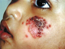 From Dermatology Info.net : Cutaneous leishmaniasis has many local synonym such as Tropical sore, Children are more susceptible, where solid immunity is acquired after the first infestation. This is why some natives sometimes inoculate their children with the protozoa on the shoulder or thighs to have the disease there in order to protect the face from scarring if they are infested in the future with leishmania.