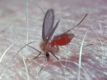 Picture at left: Surrounded by the forest-like hairs of her victim, a sand fly delivers what could be a parasite-carrying bite that causes leishmaniasis. Fall is peak sand fly season in Iraq, where service members who do not follow protective measures could be at risk for the disease. In 2002 and 2003, 73 service members were diagnosed with the cutaneous (skin) version of the disease. All but two spent time in Iraq. |